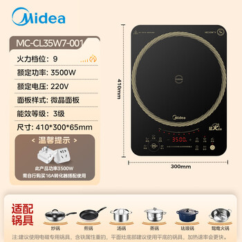 美的(Midea)电磁炉电陶炉电池炉家用猛火3500W大功率电磁灶匀火加热火锅炉一体大面板煮粥耐磨易洁CL35W7-001