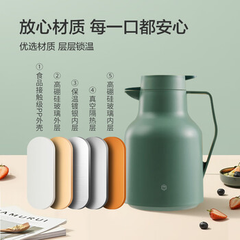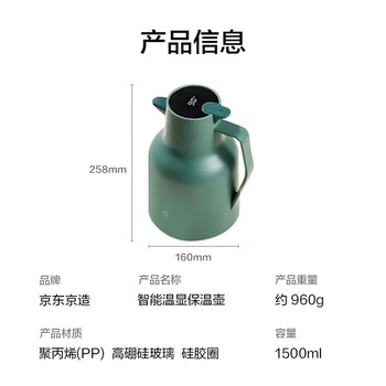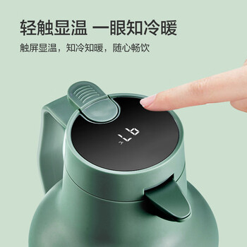 京东京造保温壶 智能温显大容量玻璃内胆热水壶暖壶宿舍办公 灰豆绿1.5L