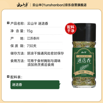 云山半迷迭香15g瓶装 西餐牛排意面披萨香料碎撒料香草西式调味料