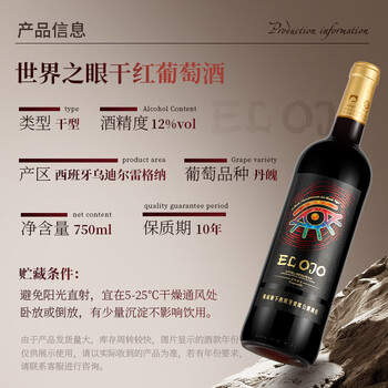 张裕先锋世界之眼干红葡萄酒整箱 乌迪尔雷格纳法定产区 原瓶进口红酒