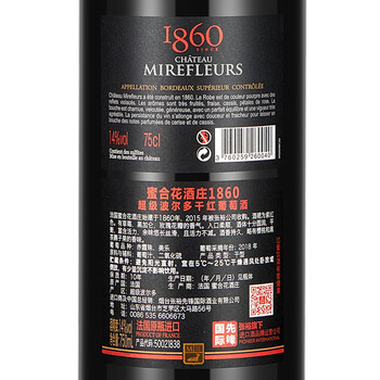 张裕(CHANGYU)先锋法国蜜合花酒庄1860干红葡萄酒 750ml 红酒礼盒 送礼礼品