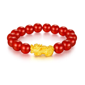梦金园黄金貔貅手链足金国潮福字貔貅红玛瑙手串女款送女友礼物