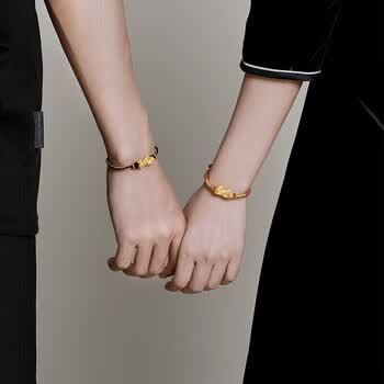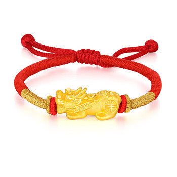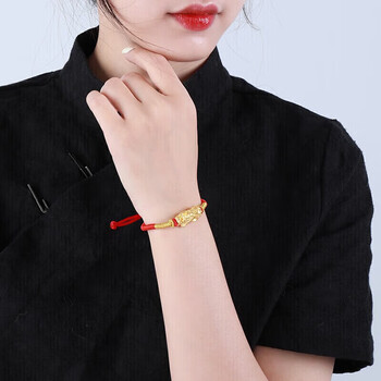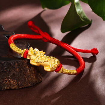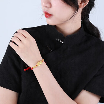 梦金园黄金手链女款足金硬金貔貅转运珠本命年红绳送女友礼物母亲节礼物