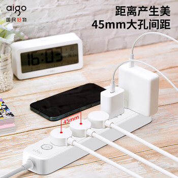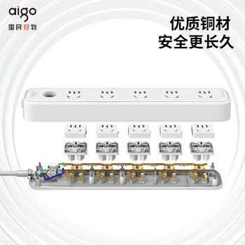 爱国者(aigo)插座/插排/排插/插线板/接线板/拖线板 5位总控全长3米 开关/大孔间距AC0501