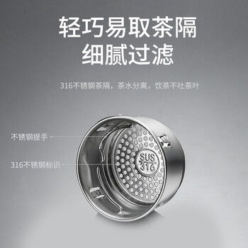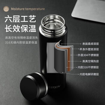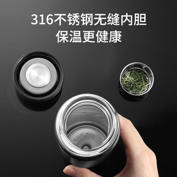 富光拾喜保温杯316不锈钢大容量水杯带茶滤泡茶男女办公室杯子500ml简约黑