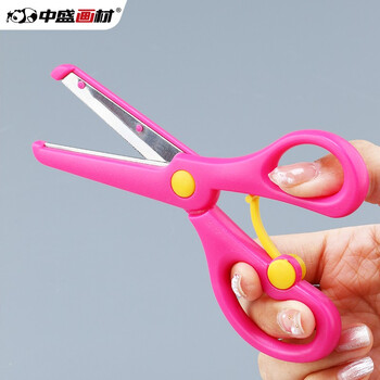 中盛画材学生手工剪刀儿童卡通包头安全剪纸刀剪子可爱小剪刀单把装颜色随机美术写生
