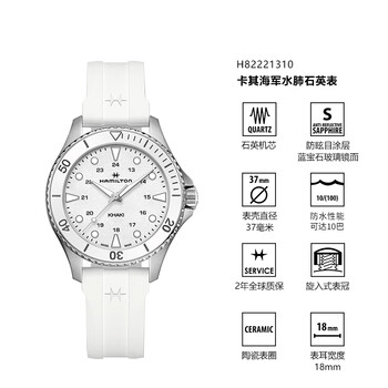 汉米尔顿(Hamilton)汉密尔顿卡其海军水肺石英表37白盘橡胶表带瑞士手表潜水表中性
