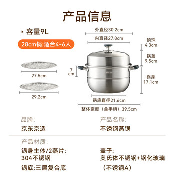 京东京造 蒸锅 大容量304不锈钢汤锅加厚炖蒸煮燃气灶家用 双层28cm