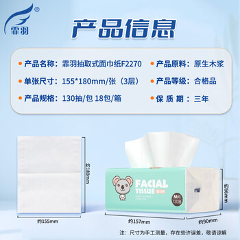 霏羽抽纸3层130抽*18包加大号餐巾纸家用原木浆卫生纸巾面巾纸F2270