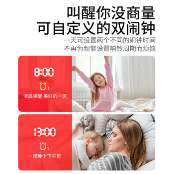 Dienmern电子时钟温湿度计充电款 家用室内高精度壁挂式室温计闹钟电子钟