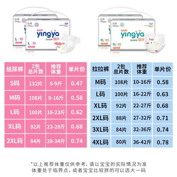 婴芽(YINGYA)拉拉裤XL码2包92片【11-13.5kg】婴儿超薄干爽尿不湿透气尿裤