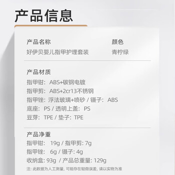好伊贝婴儿指甲剪套装 宝宝安全指甲刀新生儿童防夹肉指甲钳-青柠绿