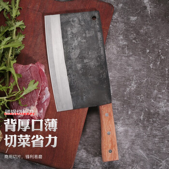 邓家刀古法锻打老式铁菜刀65Mn锰钢刀炮弹钢大号厨师商用切片刀 TA-03
