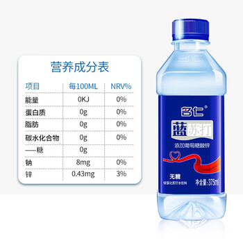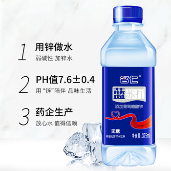 名仁蓝苏打水(无糖无汽添加葡萄糖酸锌) 375ML*24 整箱