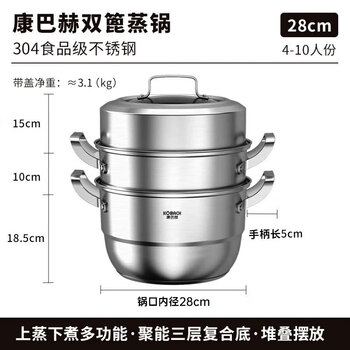 康巴赫三层蒸锅304不锈钢汤锅德式复底多用锅28cm电磁炉燃气灶通用