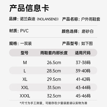 诺兰森迪 雨鞋套 一次性旅行配件加厚底 耐磨平底白色 适合36-38
