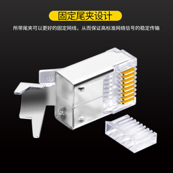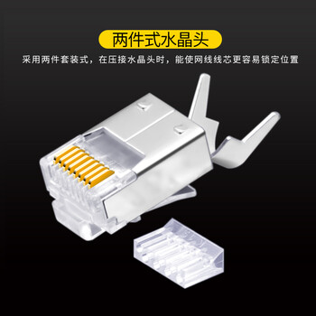 CNCOB六类水晶头两件尾夹式分体屏蔽工程级千兆网络镀金rj45电脑网线接头cat6类水晶头 10颗/袋 CN-TC6H6B-23AB