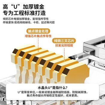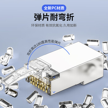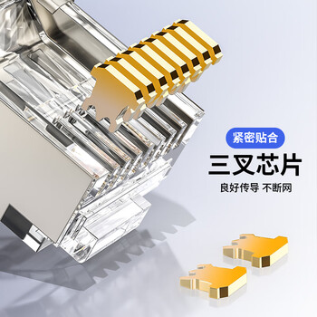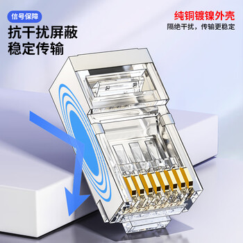 CNCOB超五类水晶头屏蔽工程级镀金纯铜cat5e家用网络监控rj45网线接头超5类水晶头 100颗/盒 CN-1001P