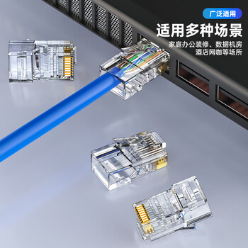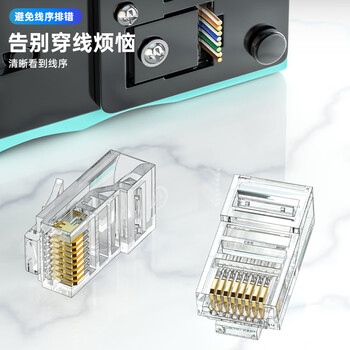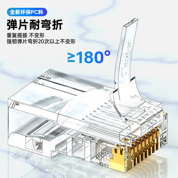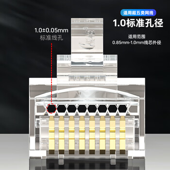 CNCOB超五类穿孔式水晶头非屏蔽通孔千兆rj45网线接头8P8芯纯铜镀金超5类水晶头 100颗/盒