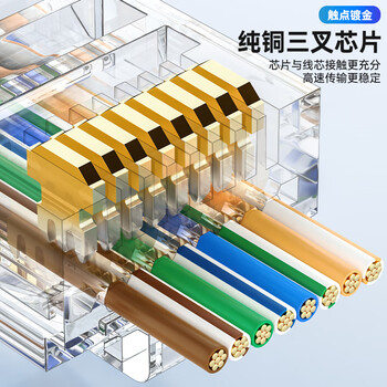 CNCOB超五类穿孔式水晶头非屏蔽通孔千兆rj45网线接头8P8芯纯铜镀金超5类水晶头 100颗/盒 CN-104M1-23AC