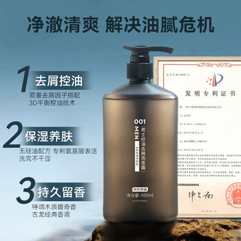 京东京造001古龙香氛洗发水控油去屑 男士氨基酸洗发露480mL洗头膏