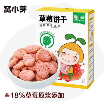 窝小芽儿童零食草莓饼干65g/盒 18%草莓果蔬原浆不添加白砂糖盐泡芙小吃