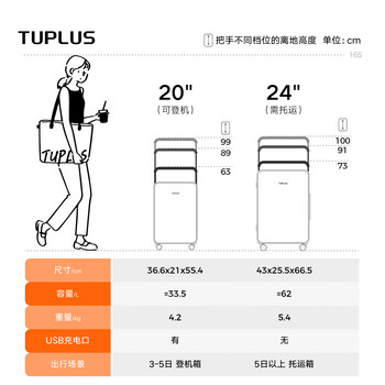 途加TUPLUS 平衡系列旅行箱中置宽拉杆箱大容量行李箱 星蓝 24英寸