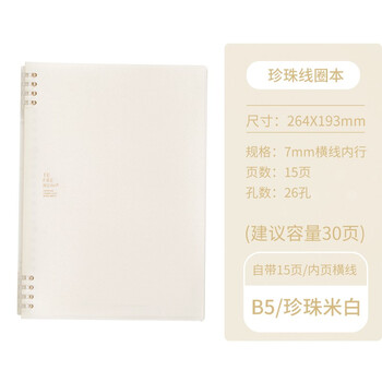 锦宫(KINGJIM)B5活页本商务办公学生记事本笔记本日记本线圈本珍珠米白9855TTE-GSR