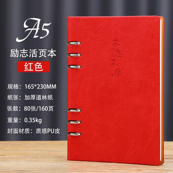 嘉然恒 活页本a5加厚笔记本本子创意励志封面商务办公文具记事本可拆卸替换内芯会议记录本可定制 红色