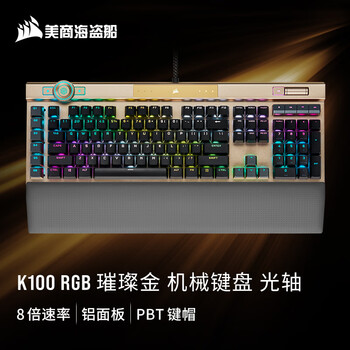 美商海盗船 (USCORSAIR) K100 RGB 璀璨金 光轴 机械键盘 电竞游戏键盘 有线键盘 全尺寸 金色 OPX光轴