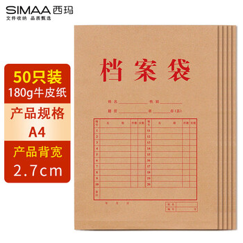西玛(SIMAA)50只A4牛皮纸档案袋180g加厚 侧宽2.7cm文件袋/资料袋/办公用品 6091