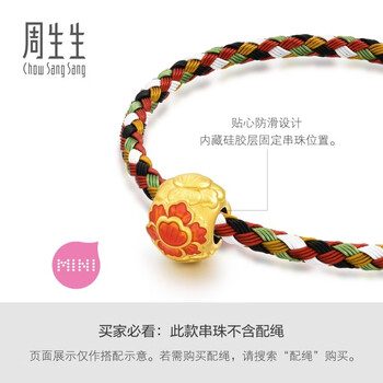 周生生黄金转运珠Charme文化祝福牡丹花足金串珠不含绳92662C