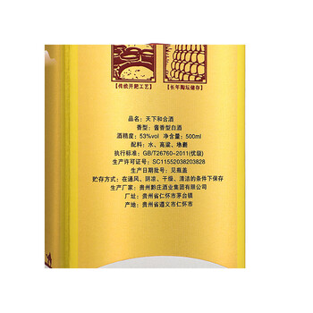 天下和合 酱香型白酒53%vol 500ml *6瓶 整箱装 含礼盒 (金)