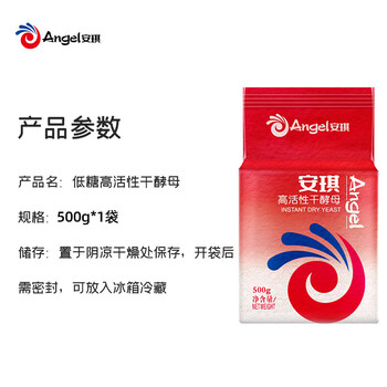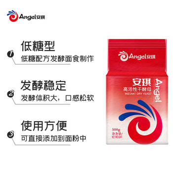 安琪红装低糖型高活性干酵母粉500g 家用发酵粉蒸包子馒头烘焙原料