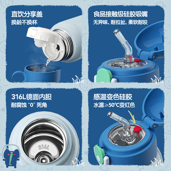 哈尔斯(HAERS)儿童保温杯316L不锈钢学生吸管水杯子双饮上学专用带背带 熊550ml