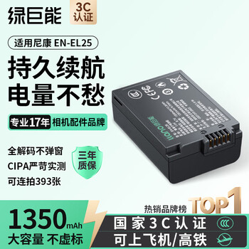 绿巨能(llano)适用尼康z30相机EN-EL25电池充电器z50二代/ZFC/Z50/Z502II/Z系列微单备用大容量电池
