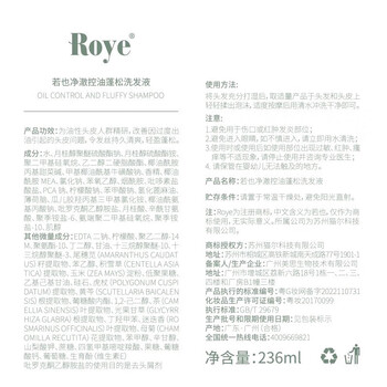 roye若也净澈控油蓬松洗发水236ml+轻盈水润补水发膜150g控油洗护套组