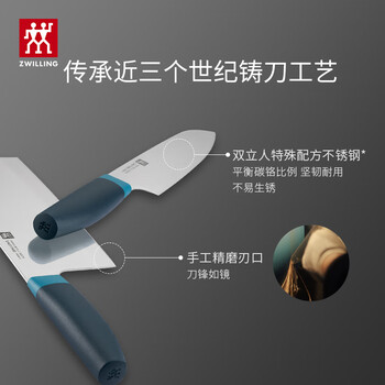 双立人(ZWILLING)刀具套装厨房刀具全套厨具水果刀菜刀砍骨刀除菌刀架5件套 蓝莓色