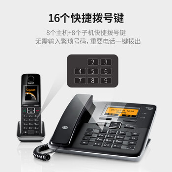 Gigaset原西门子远距离数字无绳电话机 无线座机录音子母机 子机彩屏全中文输入 别墅办公C810A一拖一(黑)