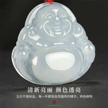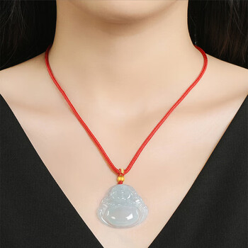 凤禧珠宝天然翡翠玉佛吊坠女士款冰种弥勒佛公玉坠玉佩生日礼物高级感