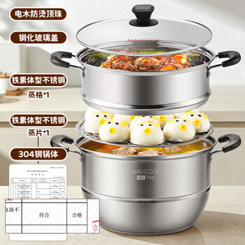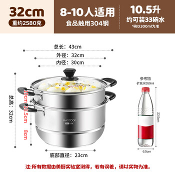 美厨(maxcook)304不锈钢蒸锅32CM 二层复底 燃气炉电磁炉通用MCZ9842