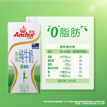 安佳(Anchor)脱脂牛奶 3.6g蛋白质牛奶 新西兰原装进口草饲1L*12盒