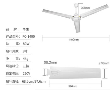 华生(Wahson)吊扇/电风扇/大风力宿舍工厂楼顶扇/工业风扇客厅厨房餐厅家用风扇交流定频风扇1.4米 FC-1400