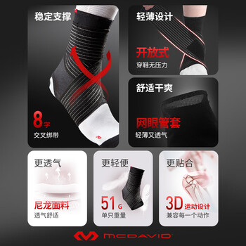 迈克达威(McDavid)433护踝网球羽毛球运动扭伤稳固康复防崴脚扭伤关节套 黑色 L码