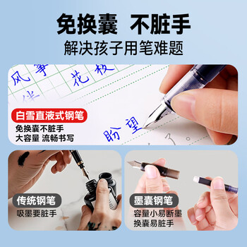 白雪(snowhite)直液式钢笔免换墨囊学生练字用三年级书写流畅手账绘画勾线 F笔尖墨蓝色6支FP20