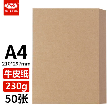 易利丰(elifo)50张230克a4牛皮纸打印纸厚硬牛皮卡纸 加厚凭证封面纸 绘图绘画纸