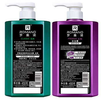 罗曼诺(ROMANO)男士沐浴露持久留香 香氛沐浴乳2支450g家庭装 经典+品魅