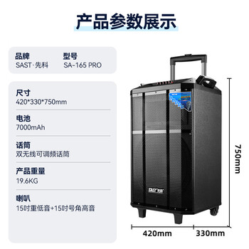 先科音响户外广场舞专用大功率大音量移动便携拉杆音响15吋重低音唱歌高品质k歌专业设备 SA-165