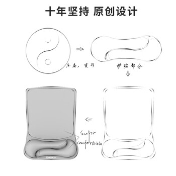 宜客莱(ECOLA)人体工学护腕鼠标垫 超大特厚记忆棉游戏专用腕托商务办公桌垫 黑色