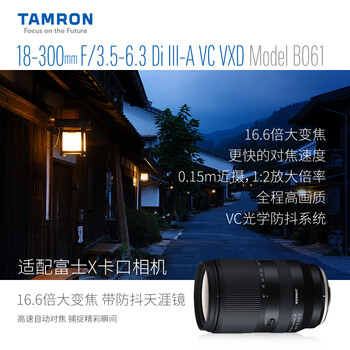 腾龙(Tamron)B061X 18-300mm F/3.5-6.3 Di III-A VC VXD防抖远摄大变焦微单镜头旅游(富士X口)